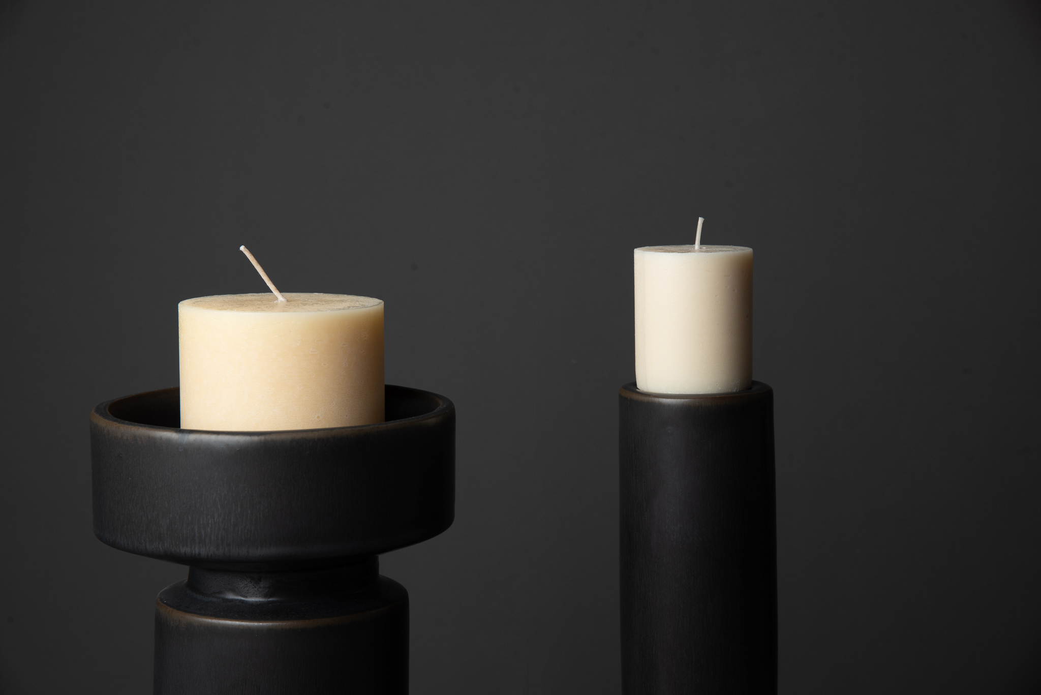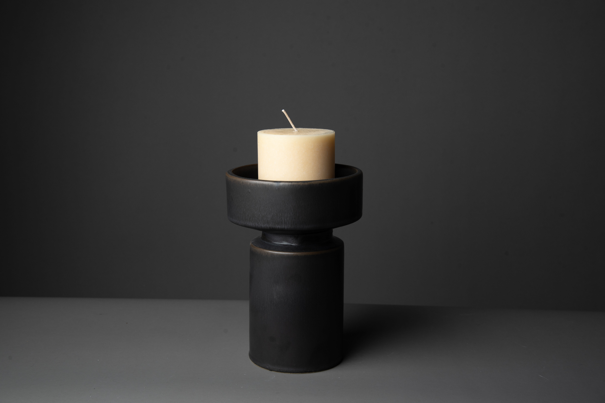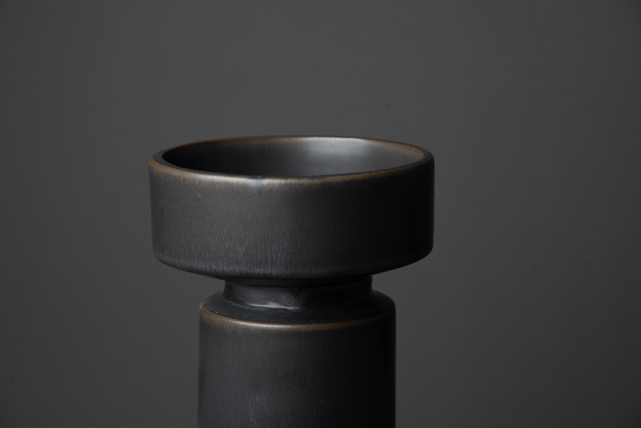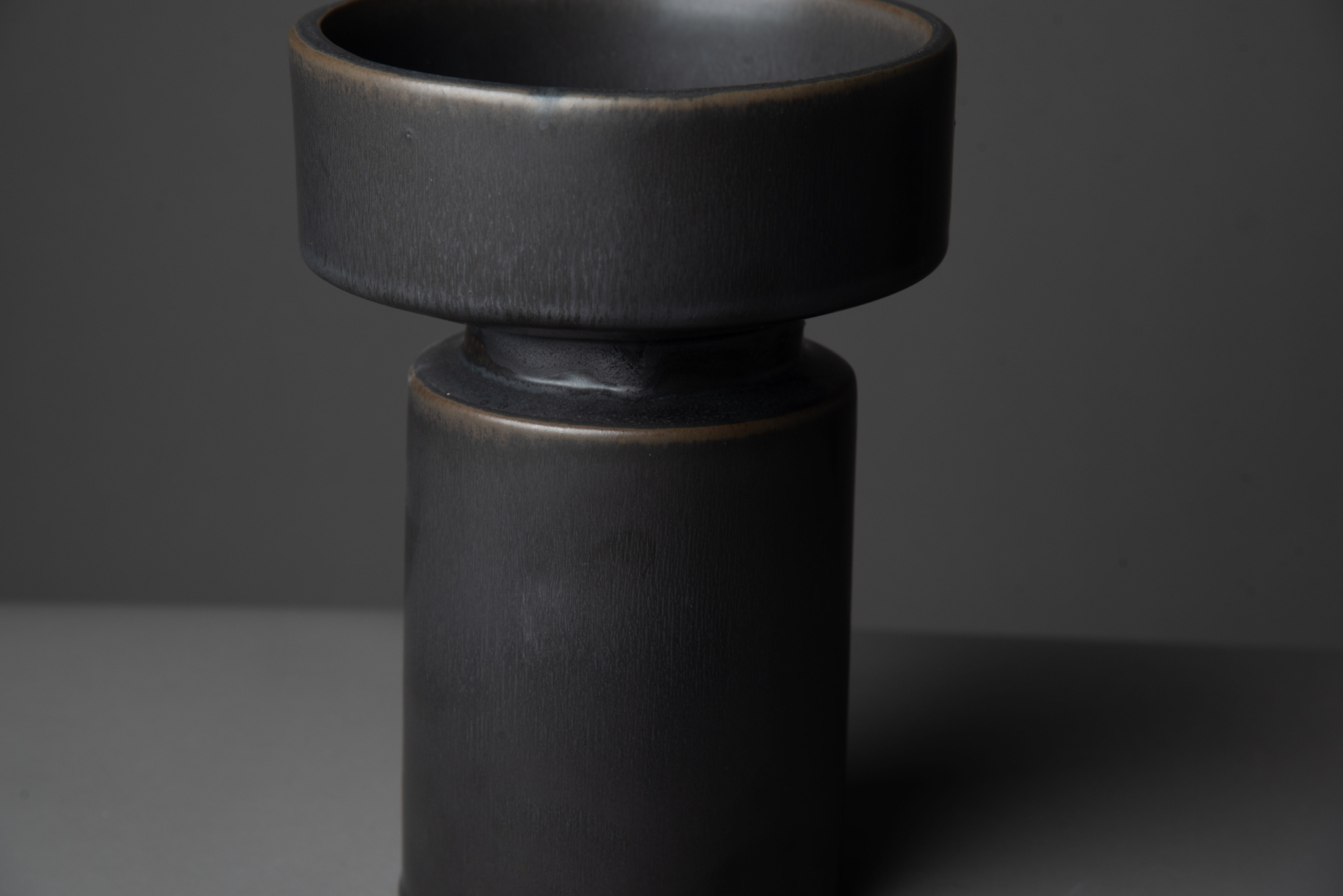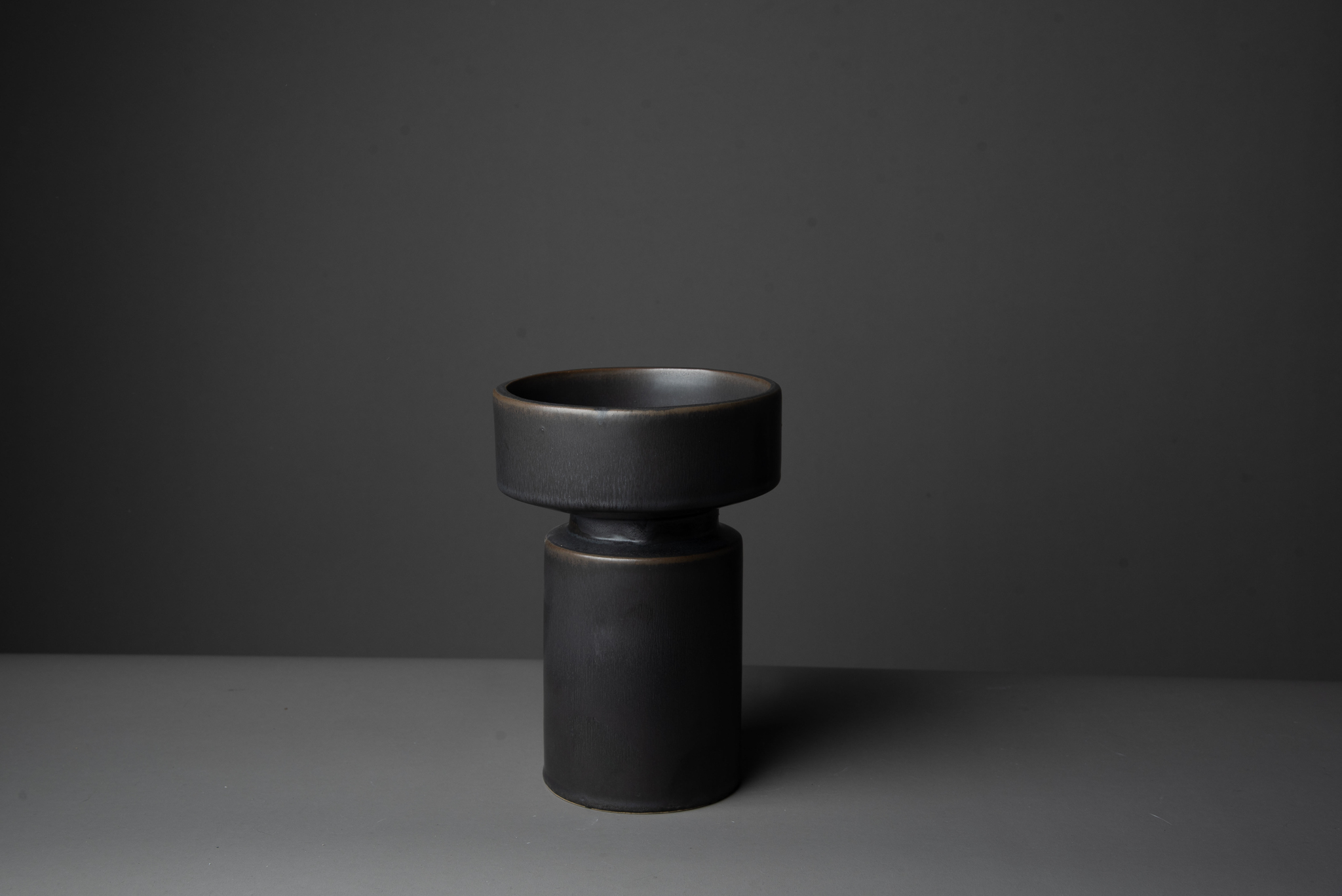 14XH20,5. Desarrollado en cerámica tonalizada en negro lavado, veteado y limites amarronados, tiene un acabado semi mate y es suave al tacto. complementalo con el Candelero Tebas o usalo simplemente como un objeto de diseño.