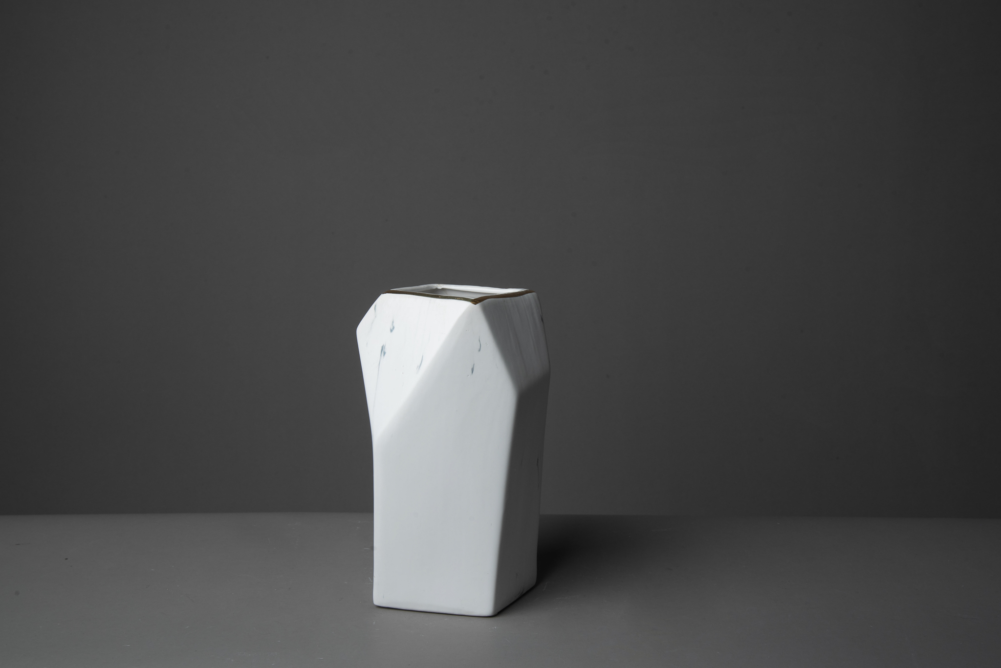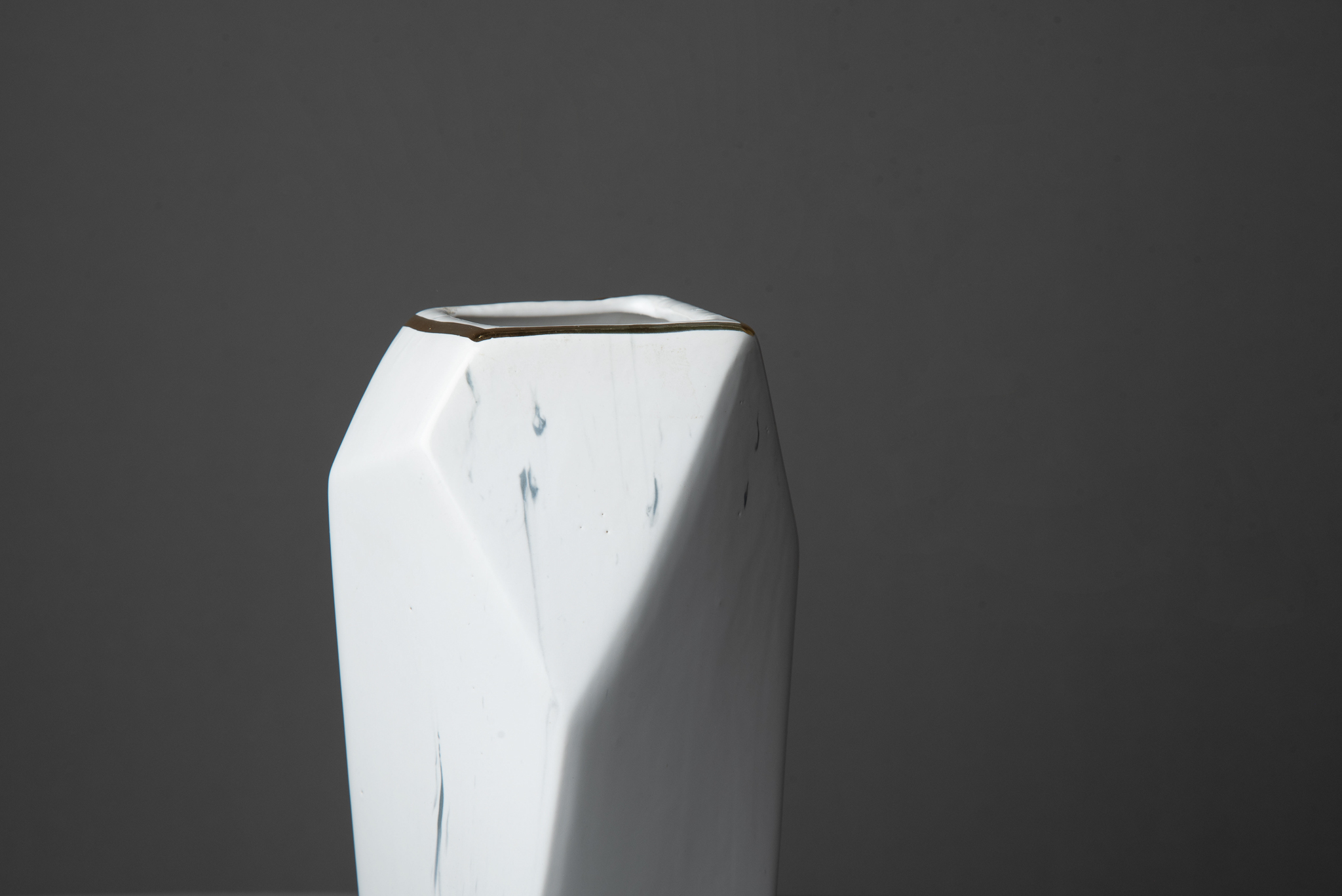 Florero de cerámica simil carrara con filete dorado. 20cm de alto x 11cm de ancho aprox