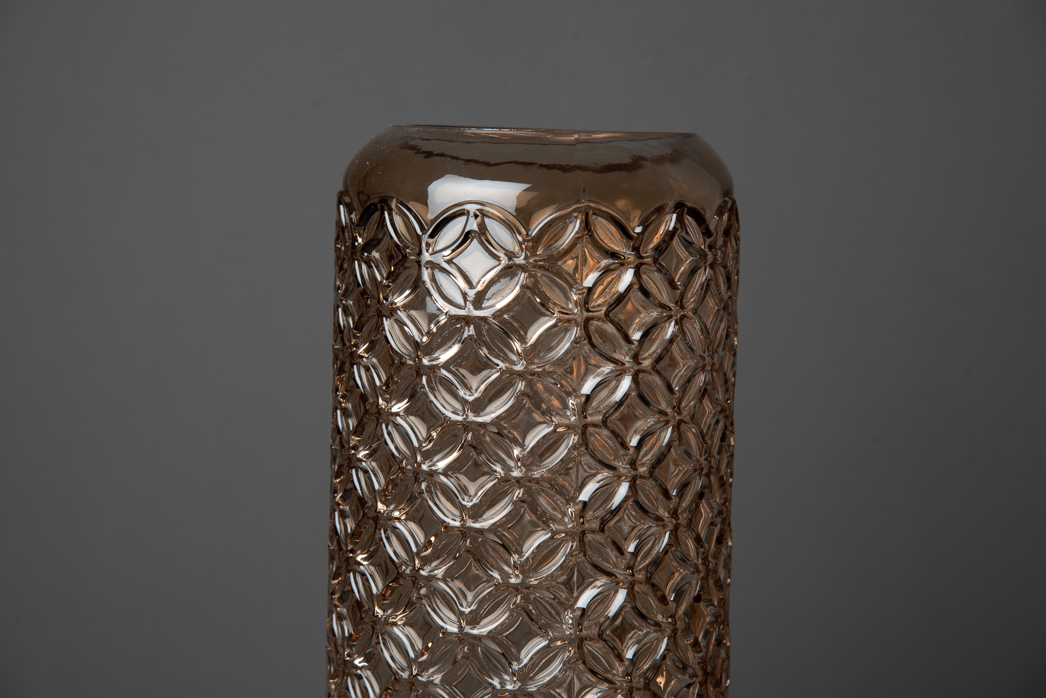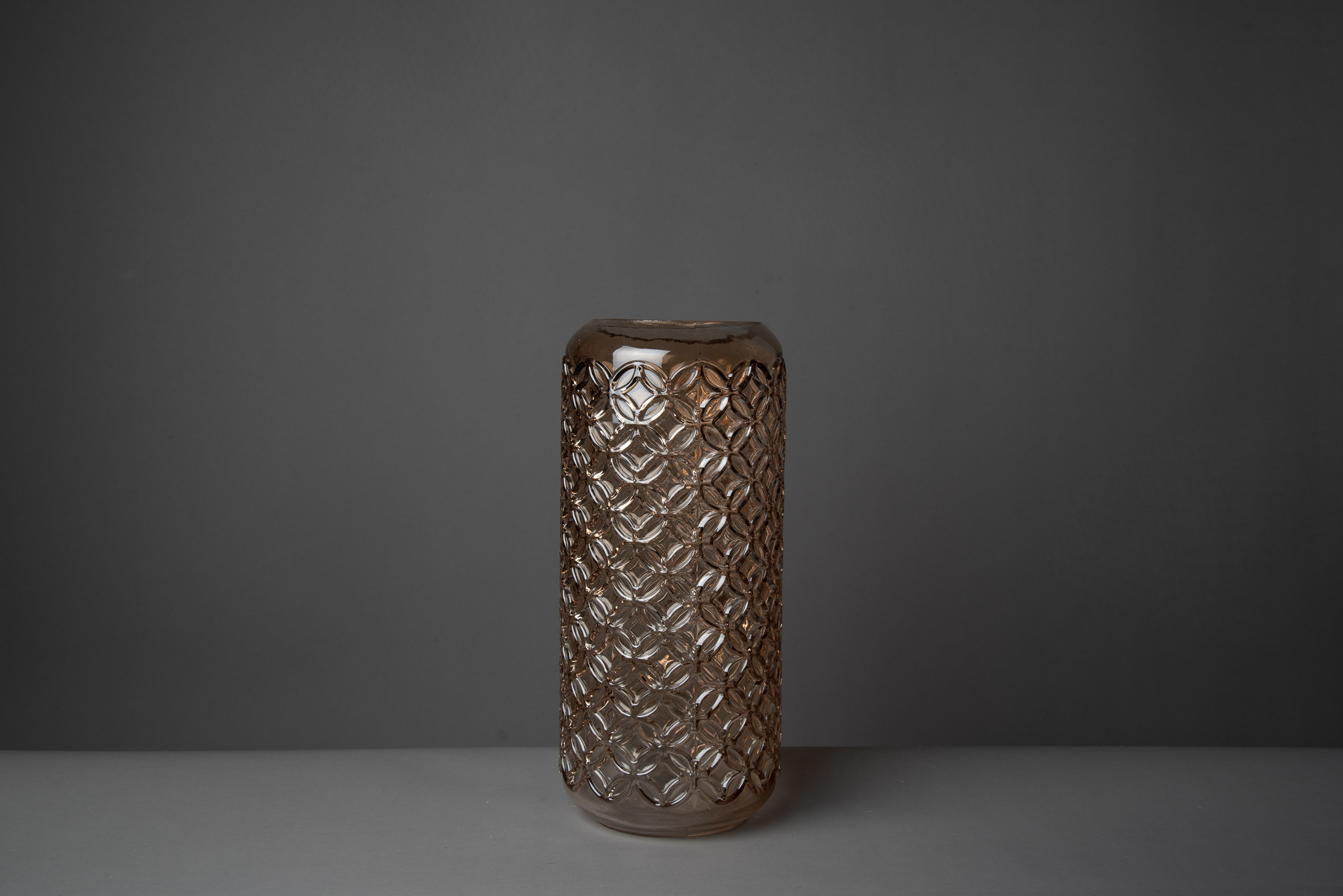 Jarrón hecho en vidrio tramado. Ideal para darte un toque vintage a tus espacios. Utilizalo como florero, candelero o simplemente un objeto de diseño y combinalo con su versión grey.