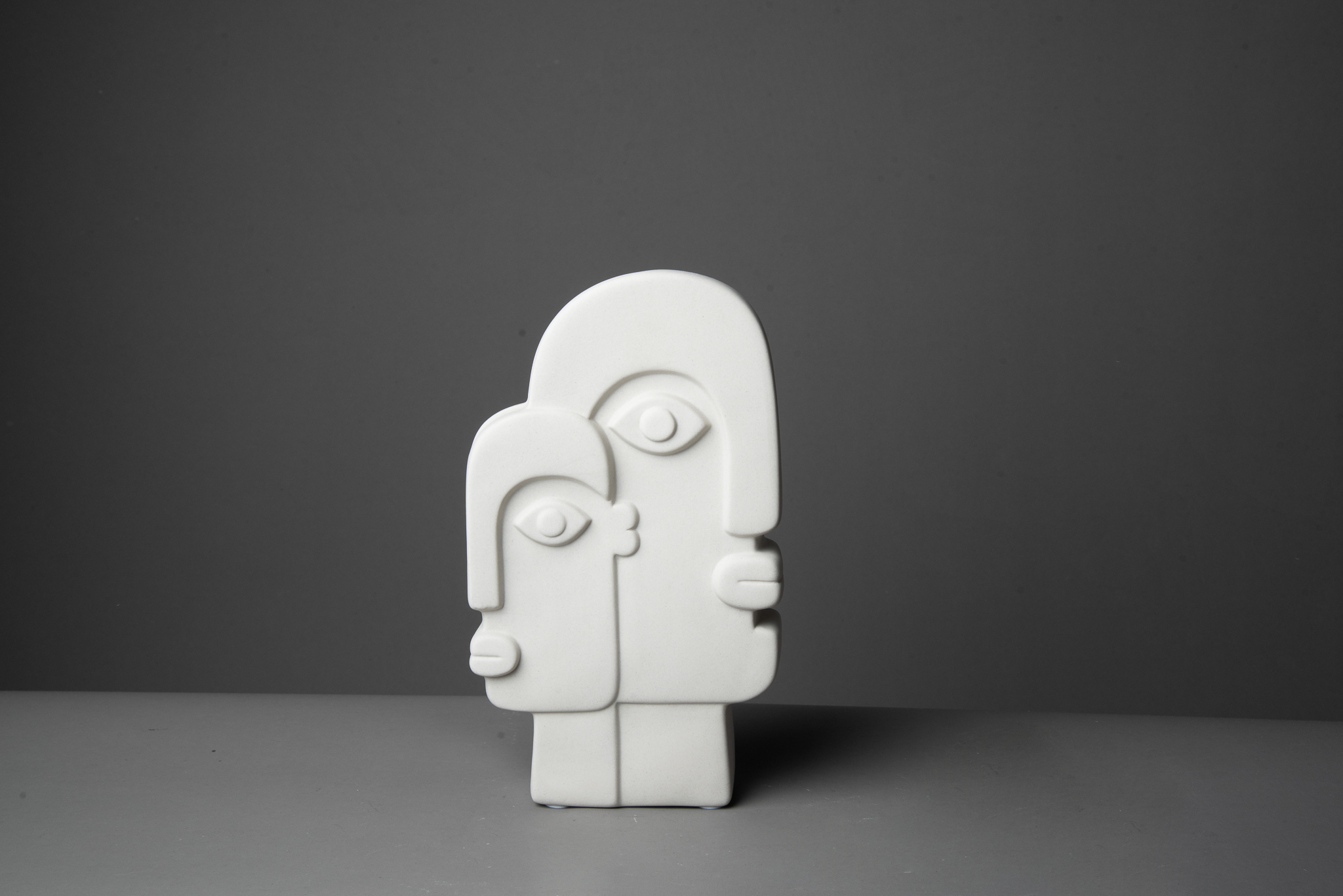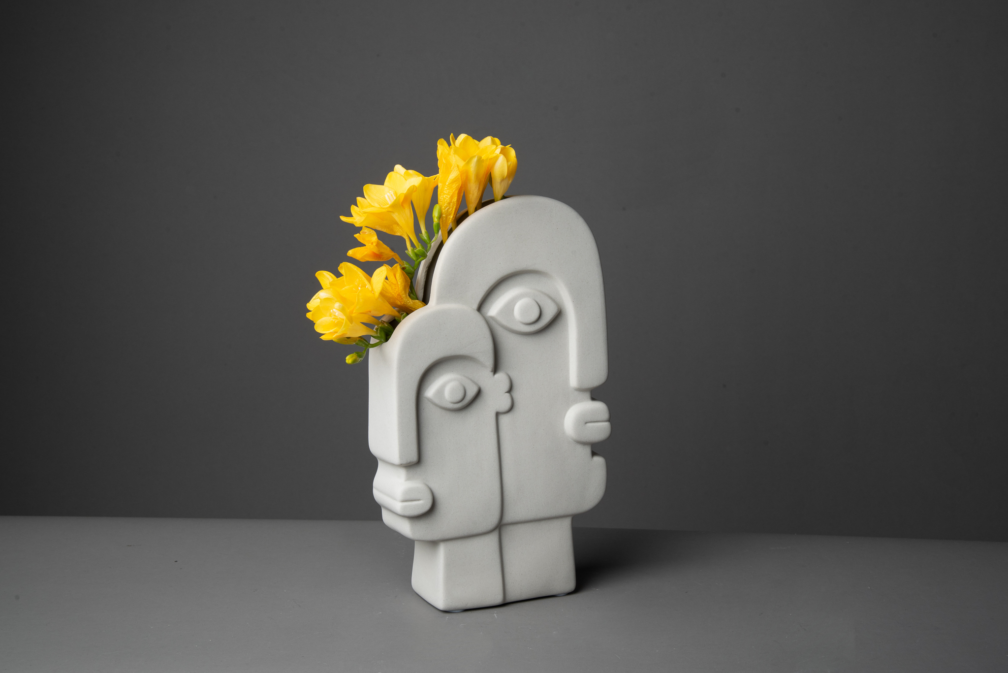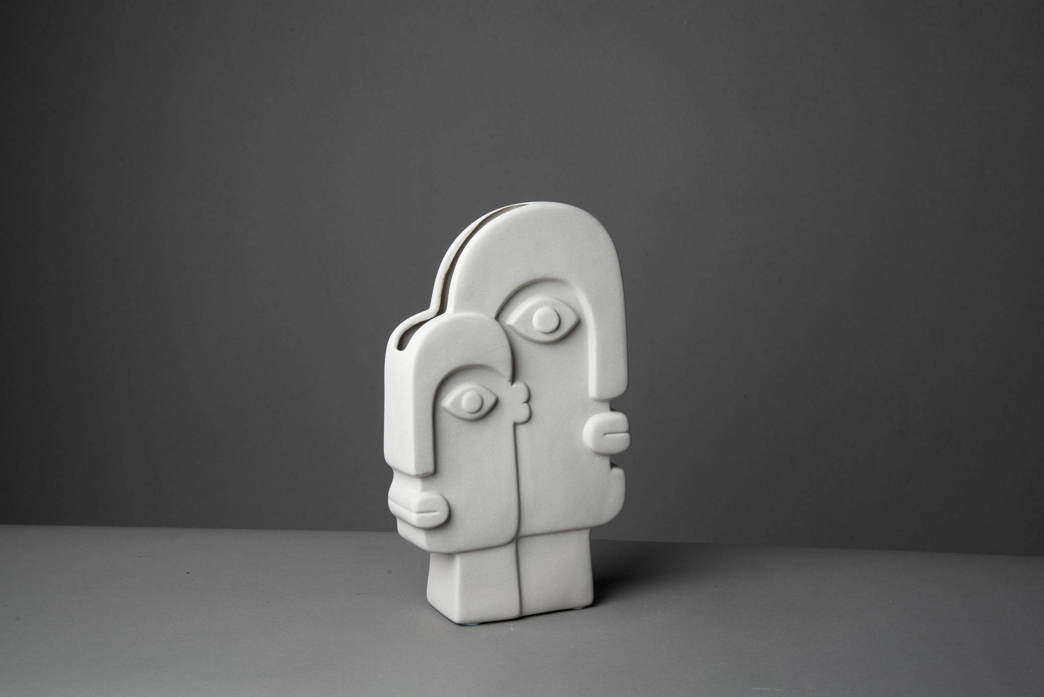 26x15xm. Elegante florero de acabado color hueso. Su diseño remite a obras de arte expresionistas.