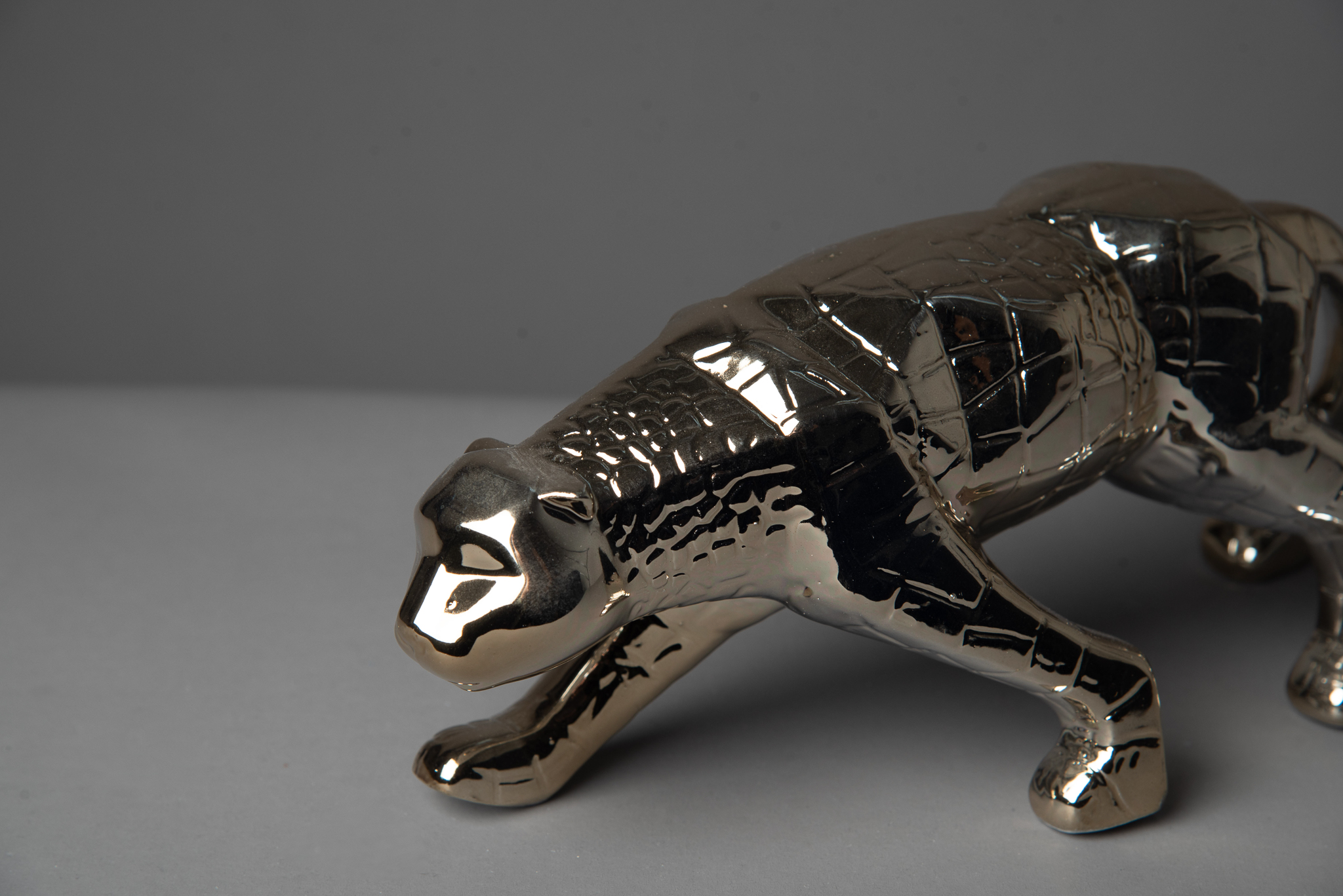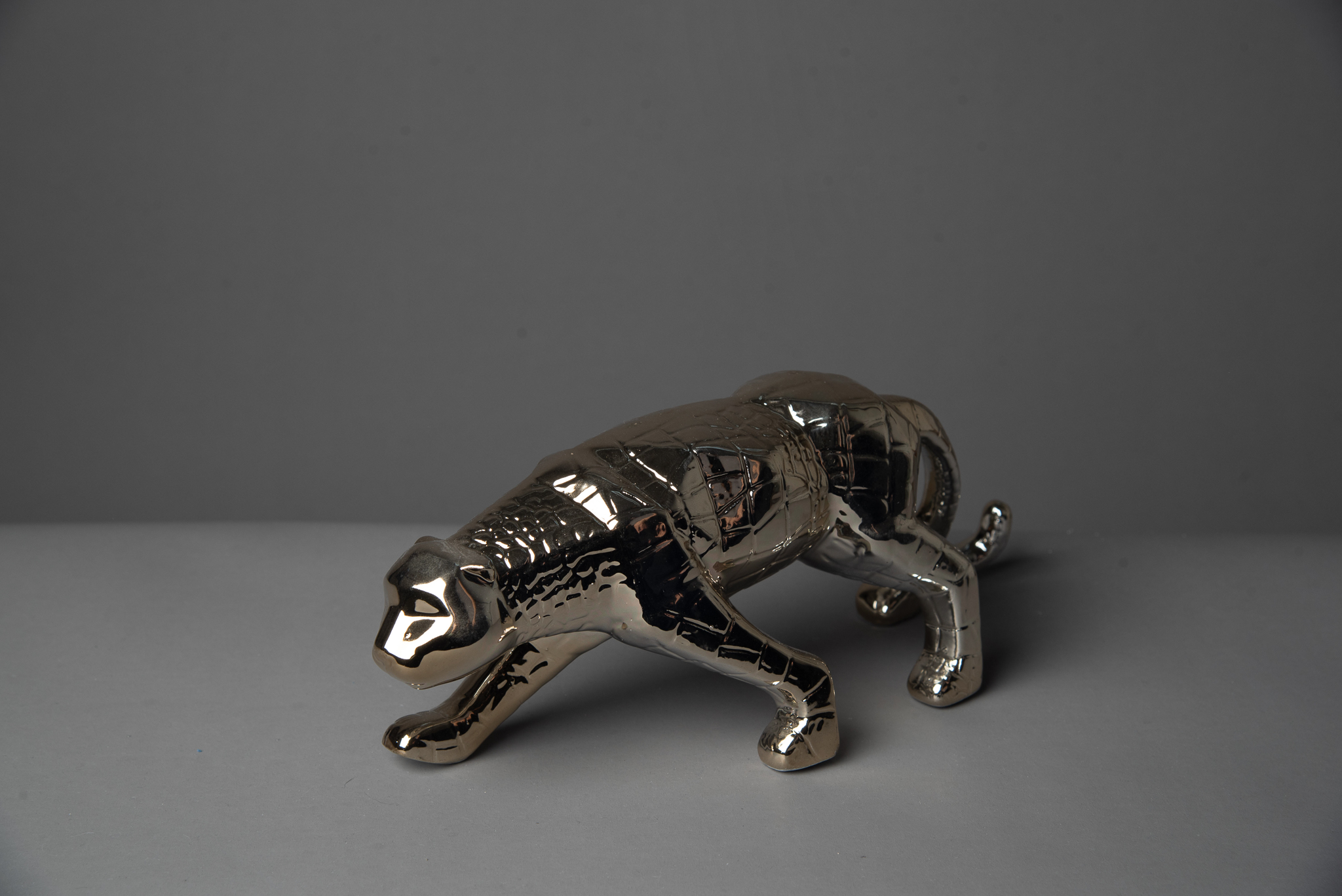 Pieza ceramica en forma de Leopardo con acabado simil oro
